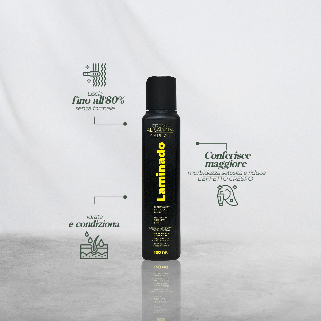 Le piastre per capelli contengono sostanze chimiche (le piastre senza sostanze chimiche NON ESISTONO). Per questo motivo è essenziale indossare guanti e una mantella per proteggere le mani e il collo. 1. Lavate i capelli con uno shampoo detergente profondo. Evitate di usare shampoo 2 in 1. 2. Risciacquare bene e rimuovere l'acqua in eccesso con un asciugamano. 3. Applicare la Crema Laminante per capelli da 1 cm dalle radici alle punte. 4. Lasciare agire uniformemente per 60 minuti. 5. Risciacquare con abbondante acqua e poi termoattivare i capelli con un phon caldo usando solo le mani, senza usare pettini o spazzole. 6. Stirare piccole ciocche di capelli per 12-15 volte con BaByliss Original Titanium."